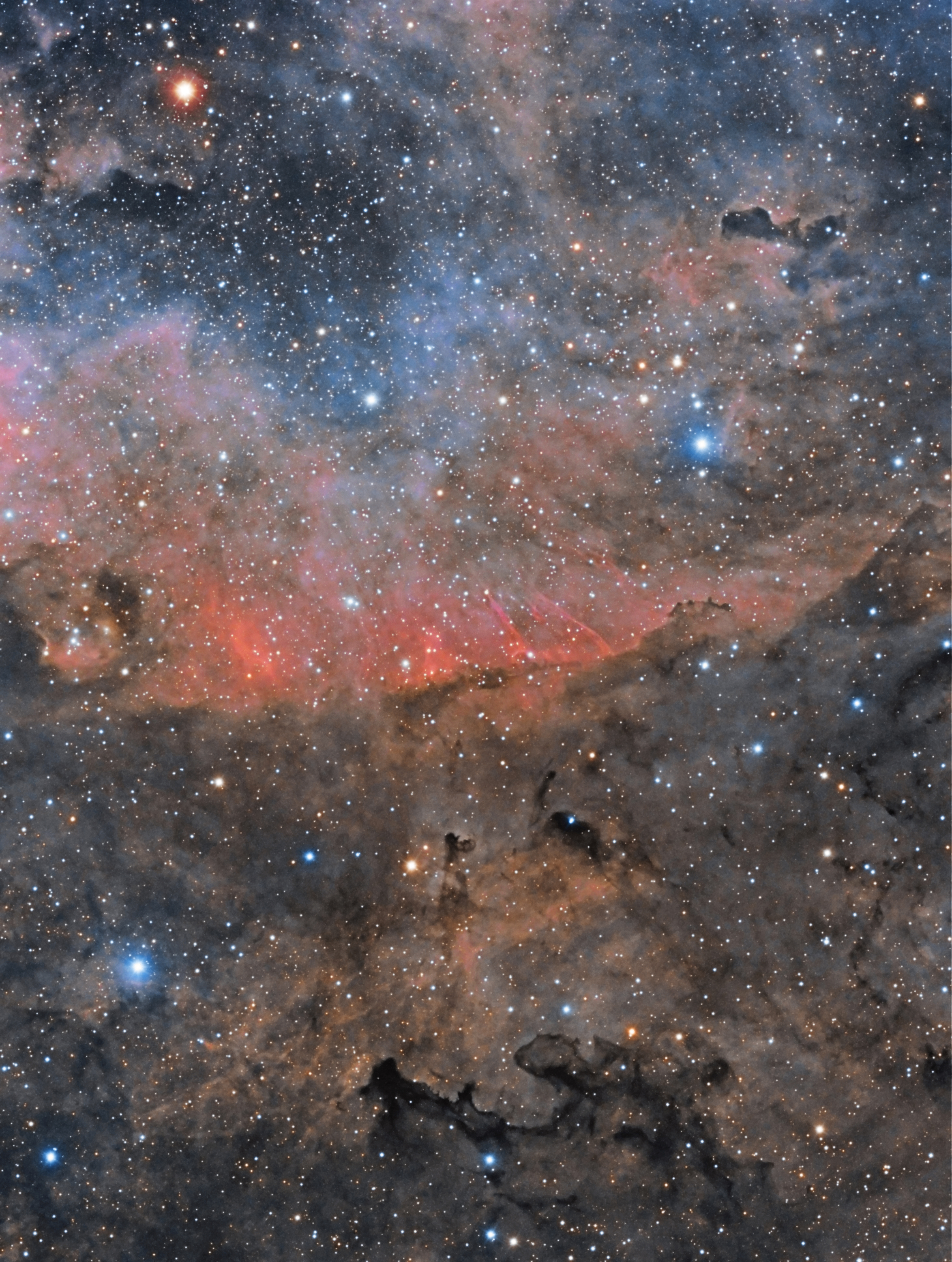 This region is very rich of dark and emission nebulae. On the image also VanDenBergh 130, a reflection nebula in this region, can be seen. It’s the circular cloudshape on the left center of the image. LBN234 is an emission nebula glowing with hydrogen and sulphur in the center of the image.