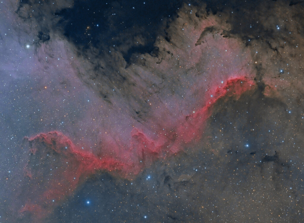 NGC 7000 is also known as the North America Nebula with the so called Gulf of Mexico. In this area the Cygnus Wall can be Read more