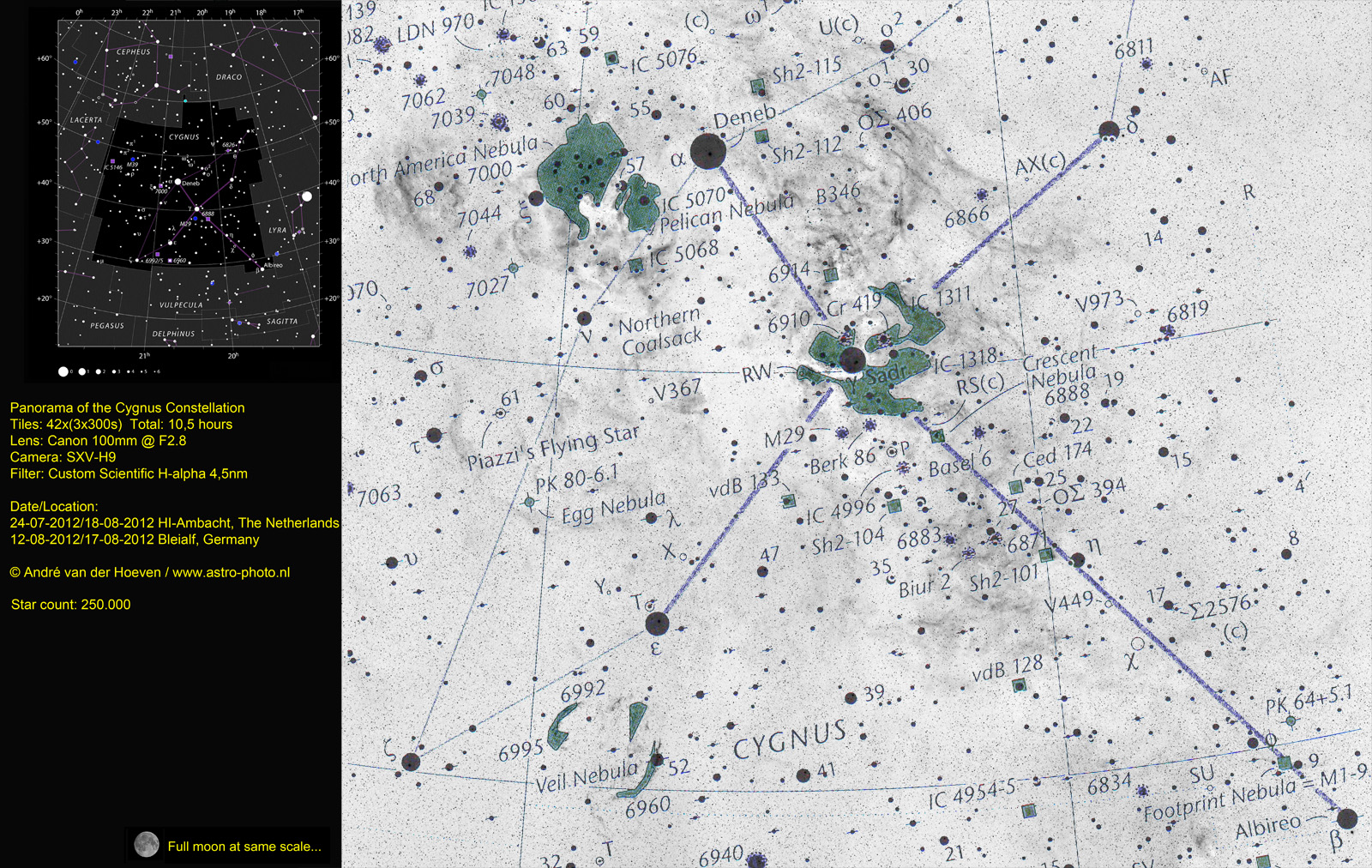 A mosaic of the Cygnus constellation taken with a normal photolens and astro CCD camera. Full scale can be found here Read more